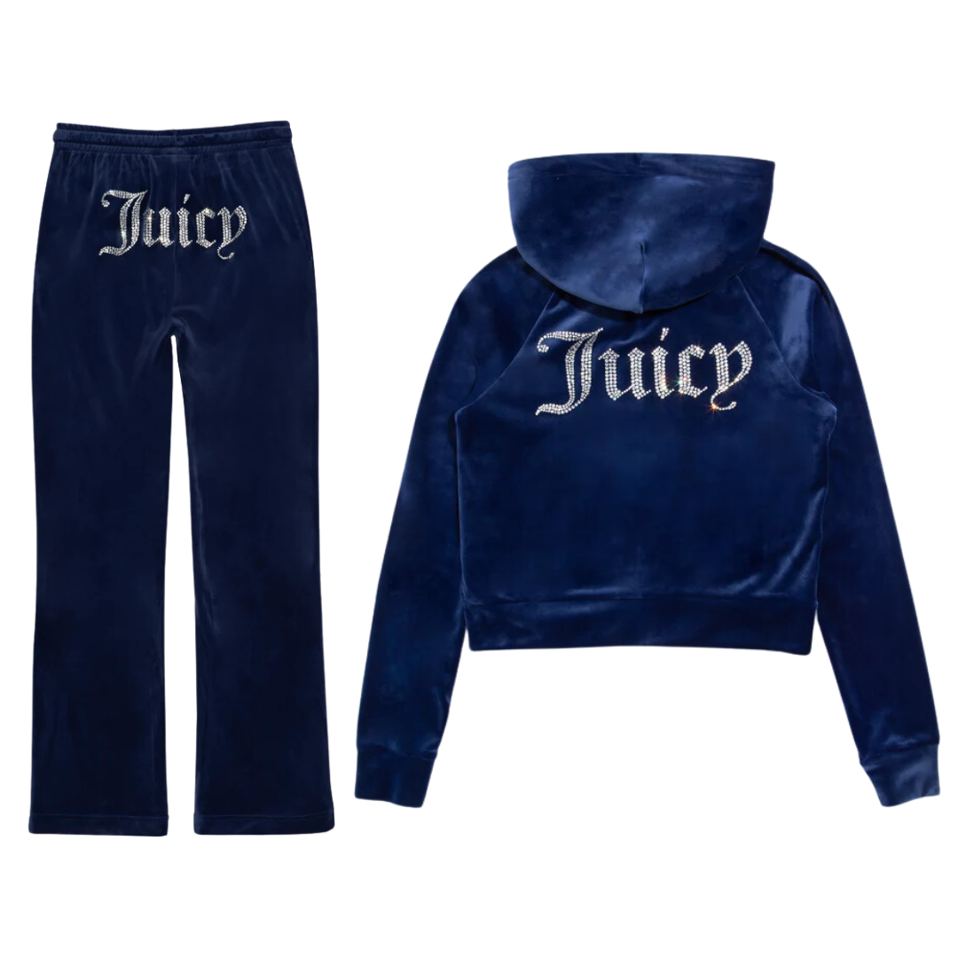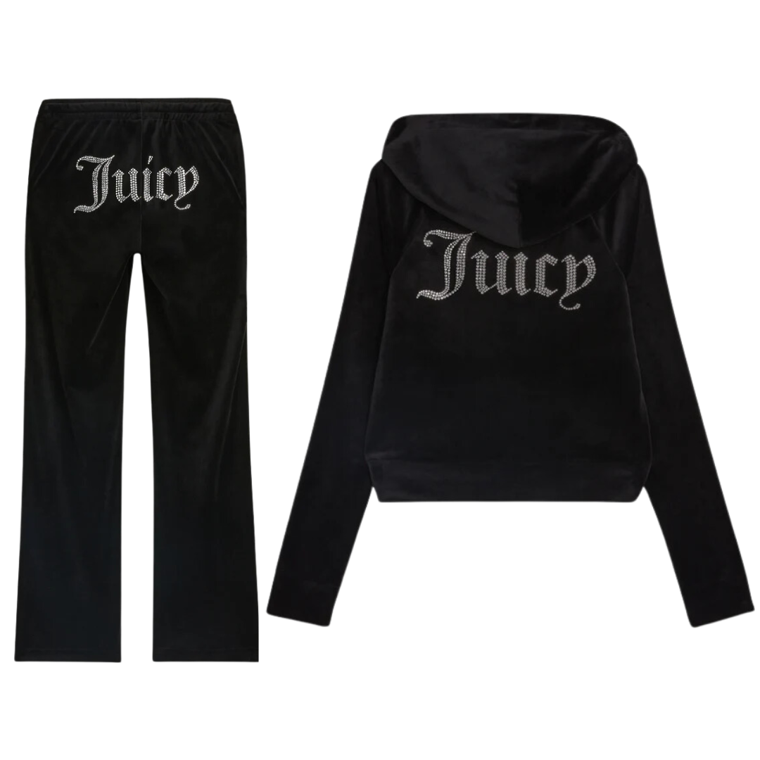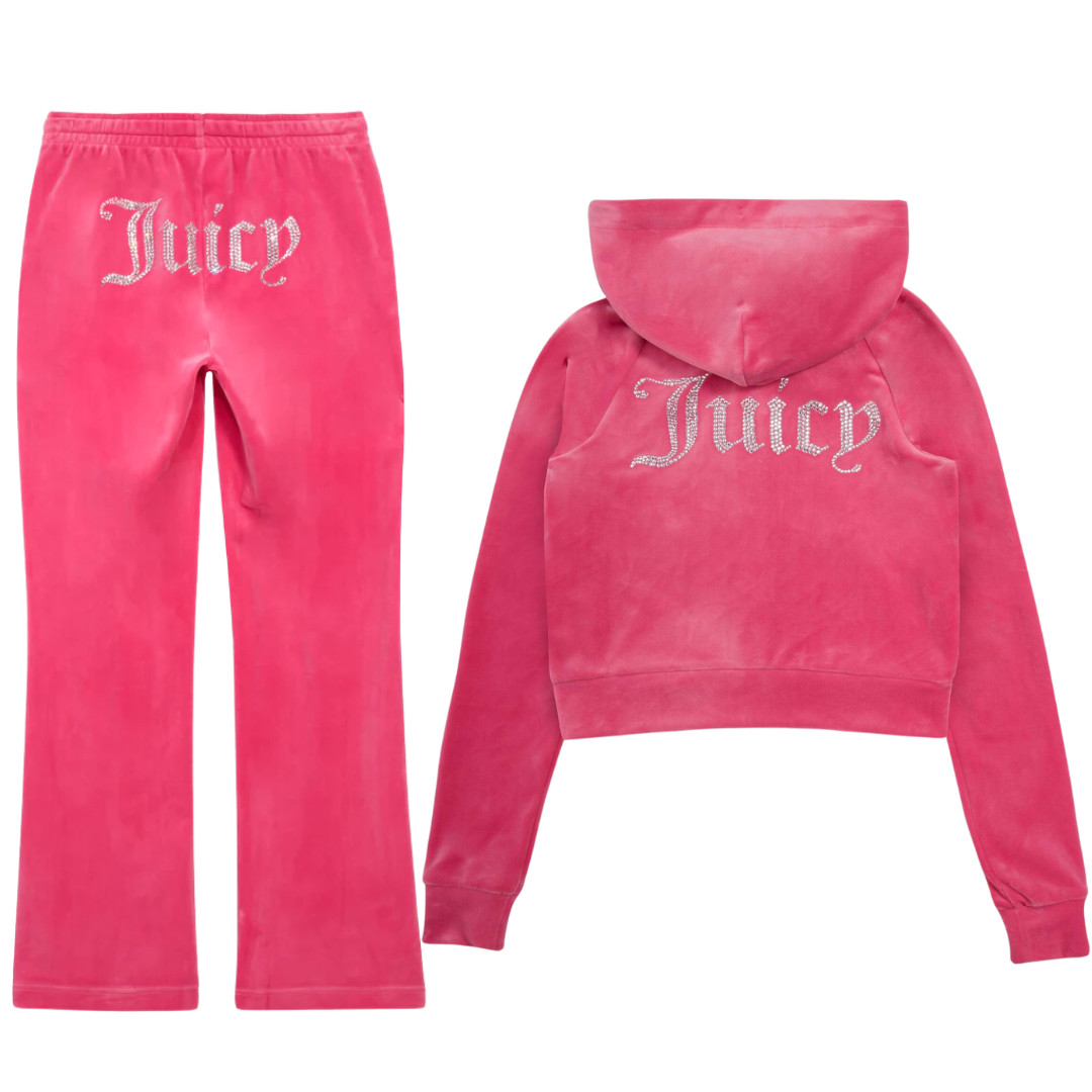 The Juicy Diamanté Velour collection brings back the iconic Y2K aesthetic with a touch of luxury. Crafted from ultra-soft velour, each piece is adorned with sparkling diamanté detailing, adding a glamorous edge to casual loungewear. Designed for both comfort and style, this collection is perfect for making a statement whether you’re relaxing at home or stepping out in signature Juicy Couture fashion.