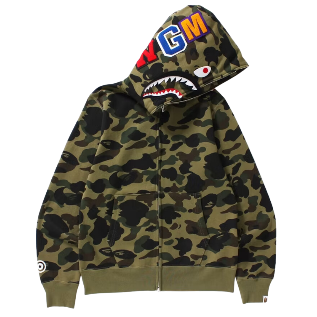 The BAPE ABC Camo Shark Full Zip Hoodie is a streetwear icon, featuring the brand's signature ABC camo print and bold shark face design. Crafted from premium materials, it offers a comfortable fit and standout style. Available in all colors, the full-zip closure allows for versatile wear, making it a must-have for any streetwear enthusiast.